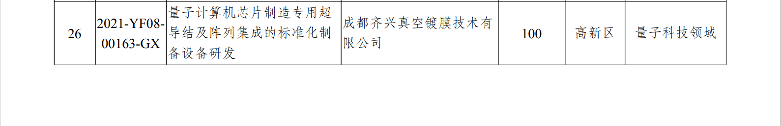 量子计算机芯片制造专用超导结及阵列集成的标准化制备设备研发项目获得2022年第1批成都市重大科技创新项目支持